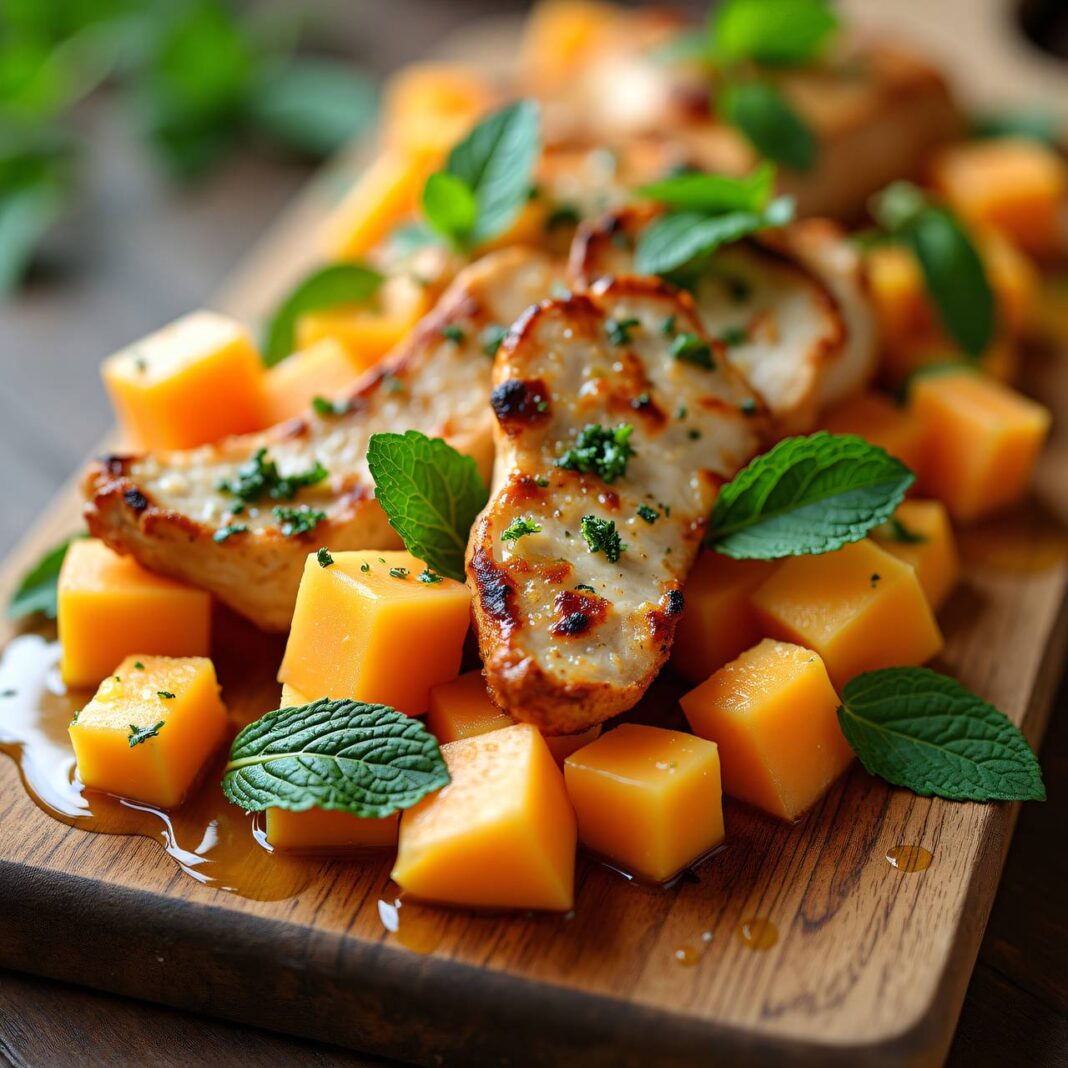 Ein leichter und erfrischender Salat mit Hühnerbrust und Melonen, perfekt für warme Tage.