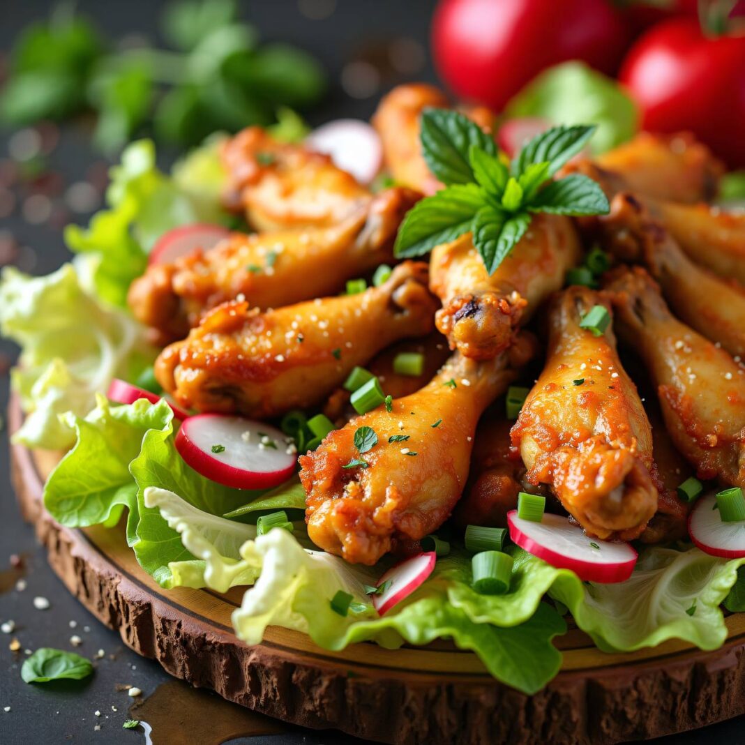 Ein leckeres Rezept für knusprige Hühnerflügel, serviert auf einem frischen Frühlingssalat.