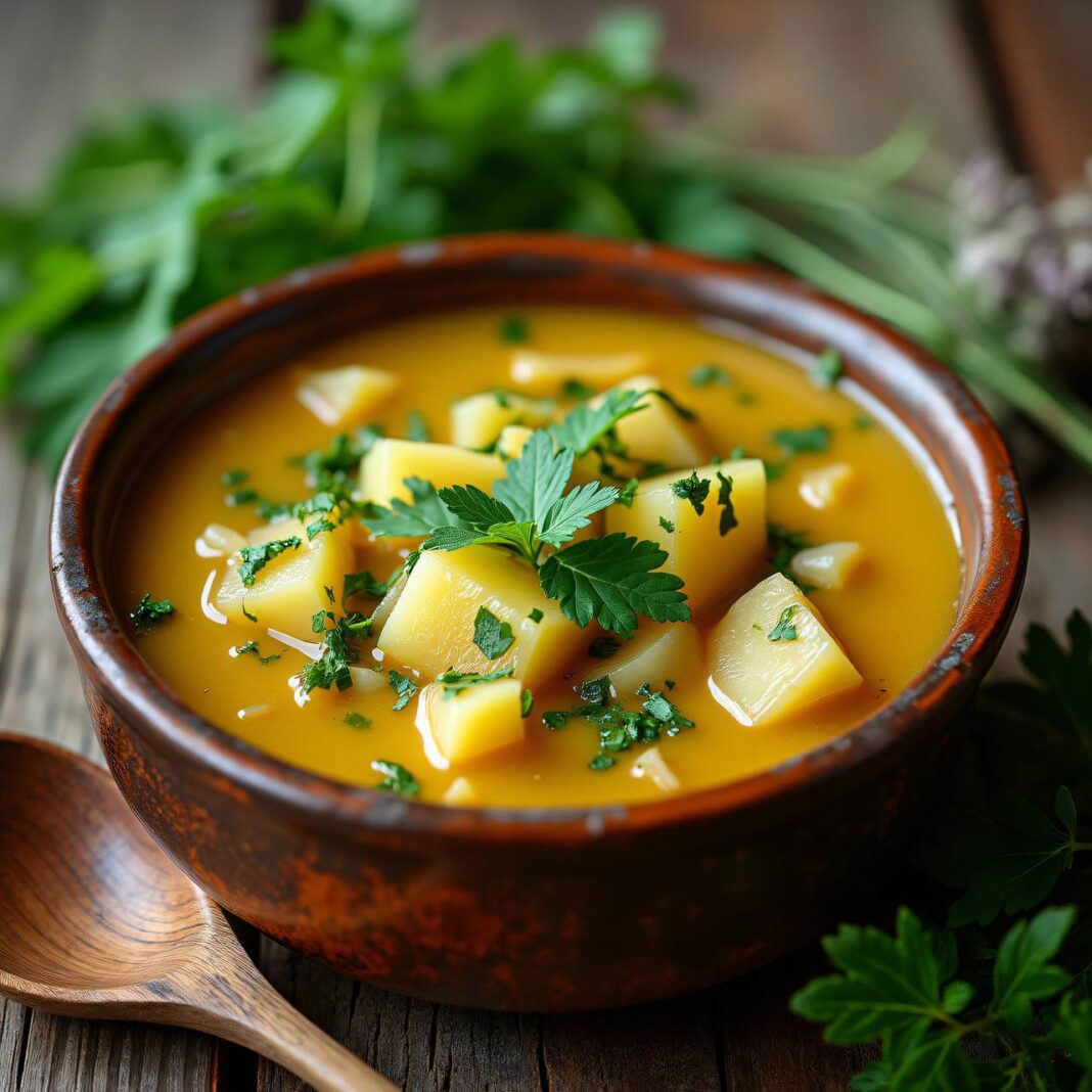 Eine herzhafte und cremige Suppe mit Kartoffeln und frischen Brennnesseln.