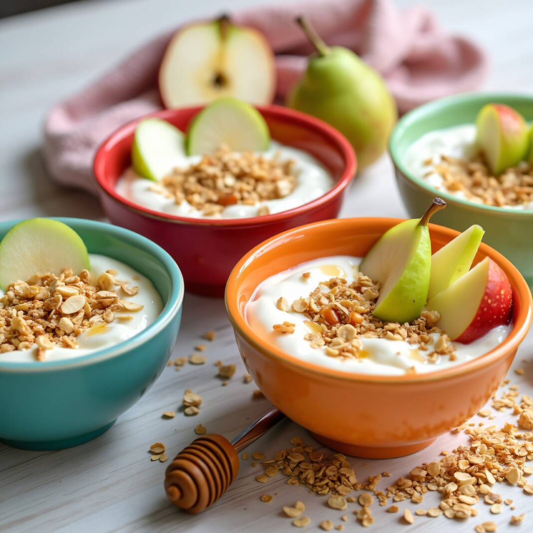 Eine gesunde und leckere Joghurt-Bowl mit selbstgemachter Rawnola, ideal für Kinder im Alter von 2 bis 4 Jahren.
