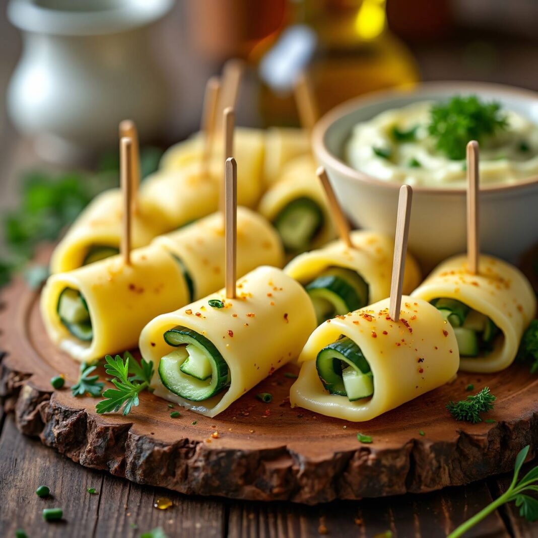 Leckere Käse-Sardellen-Rollen mit einem frischen Kräuter-Dip.