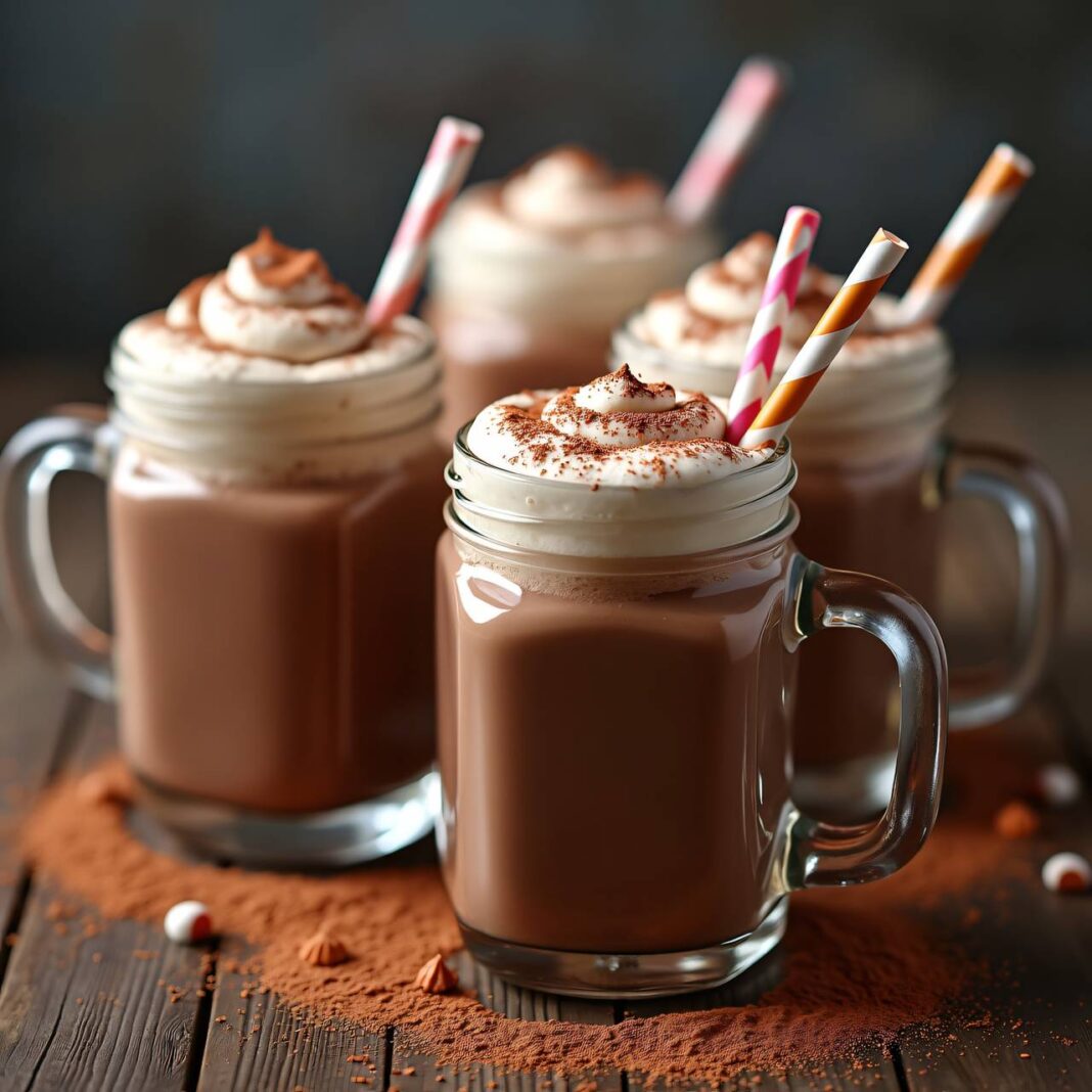 - Servieren Sie die Kakao-Getränke sofort mit einem Trinkhalm.