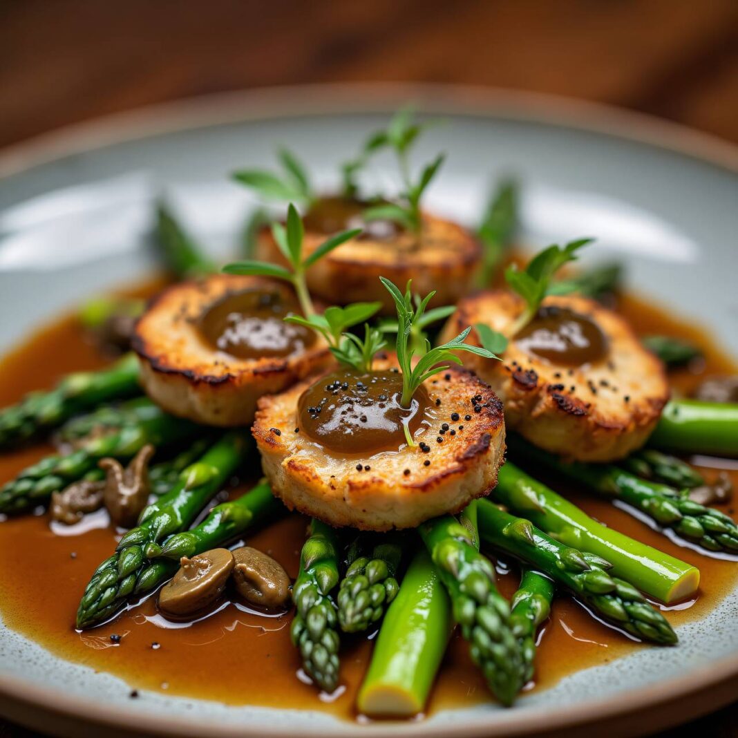 Ein köstliches Rezept für zarte Kalbsmedaillons auf einem Bett von grünem Spargel, serviert mit einer feinen Morchelsauce.