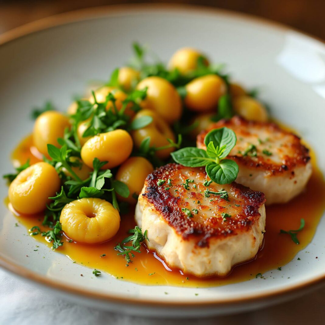 Ein köstliches Rezept für Kalbsplätzli, serviert mit knusprigen Kresse-Gnocchi.