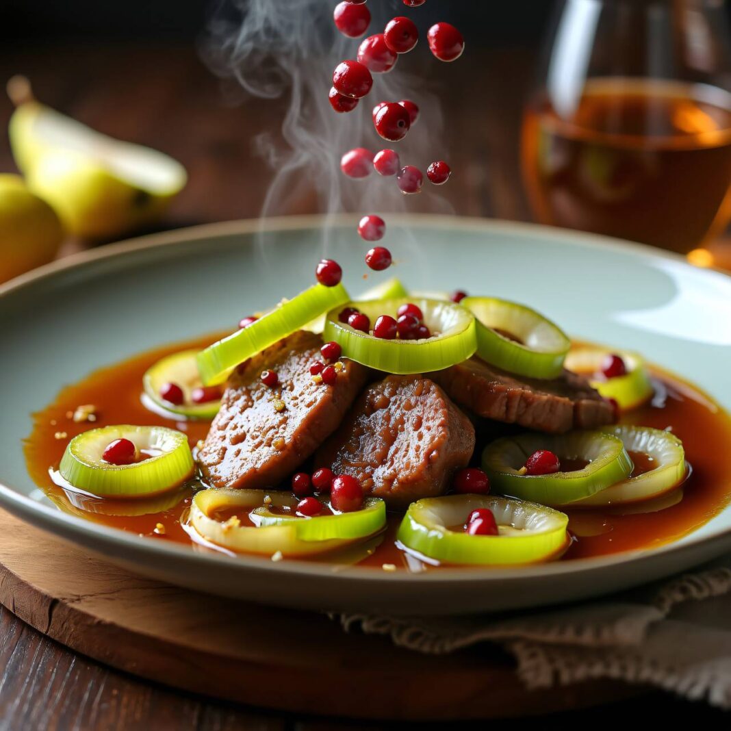 Ein köstliches Kalbsragout mit Birnen und Lauch, ideal für festliche Anlässe.