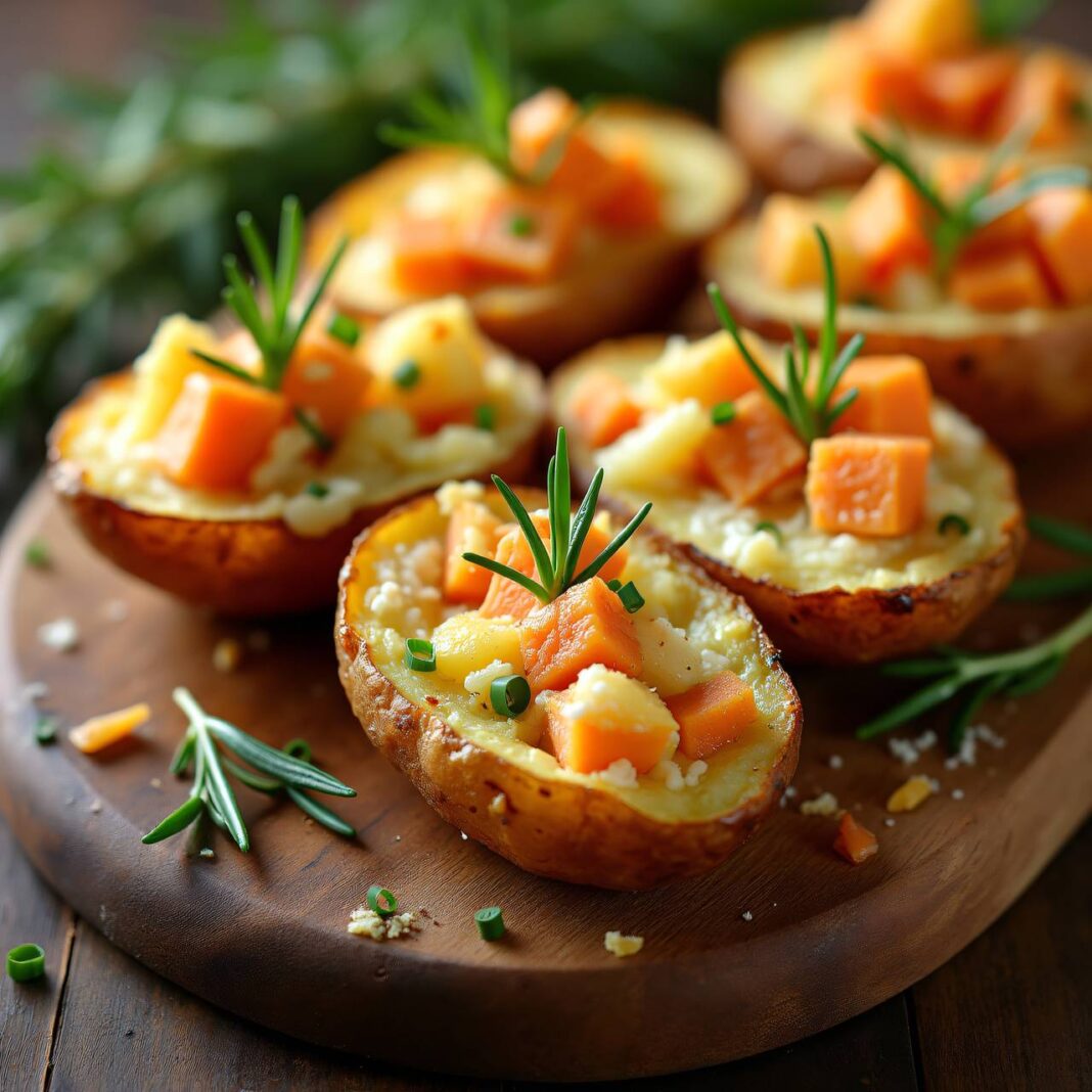 Ein köstliches Rezept für gefüllte Kartoffeln, die wie kleine Schiffchen aussehen.