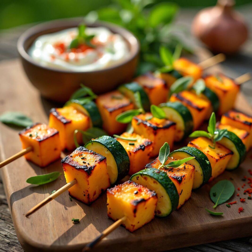 Leckere und gesunde Kartoffel-Zucchini-Spieße, perfekt für den Grill.