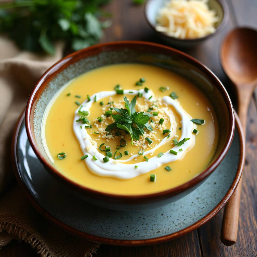Eine cremige und aromatische Kartoffelcremesuppe, ideal für kalte Tage.
