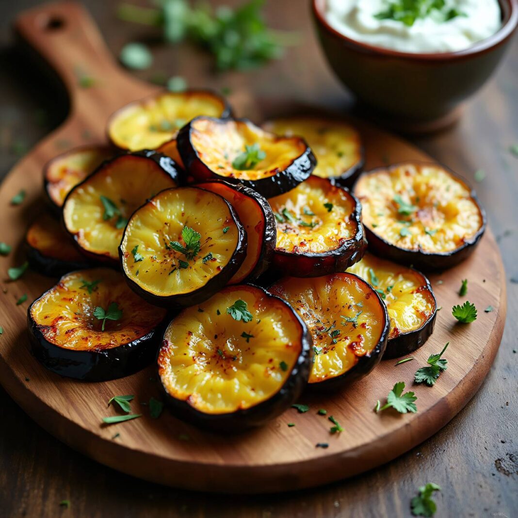 - Anrichten: Die gebackenen Kartoffeln und Melanzani auf Teller verteilen und das Kräuterjoghurt dazu servieren.
