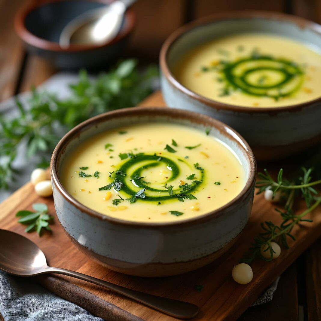 Eine herzhafte Kartoffelsuppe verfeinert mit aromatischer Kräuterbutter.