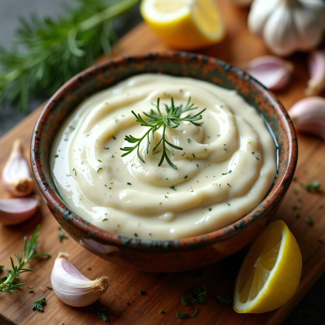 Eine leckere und cremige Knoblauchsauce, ideal als Dip oder zu Gerichten.