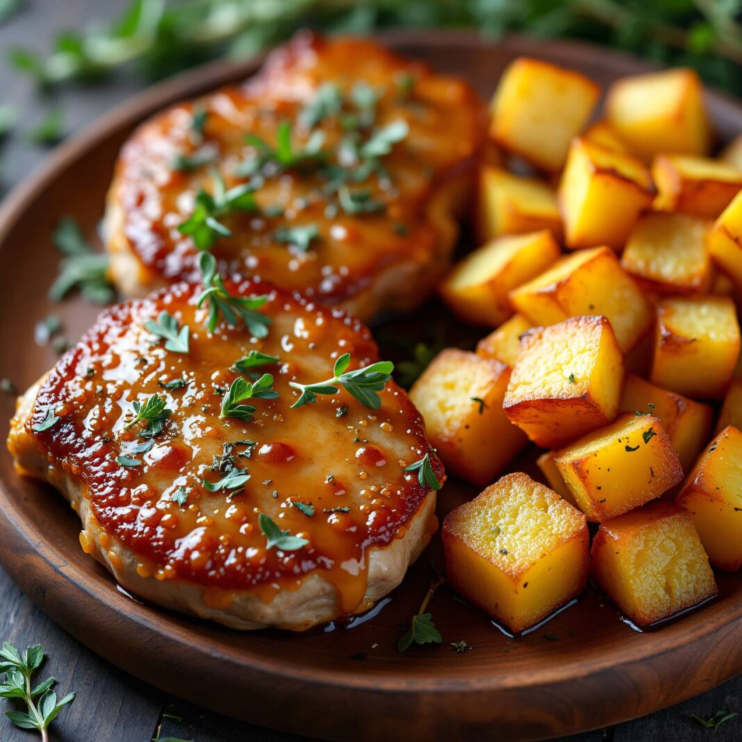 Ein köstliches Rezept für saftige Schweinekoteletts mit goldbraunen Bratkartoffeln.
