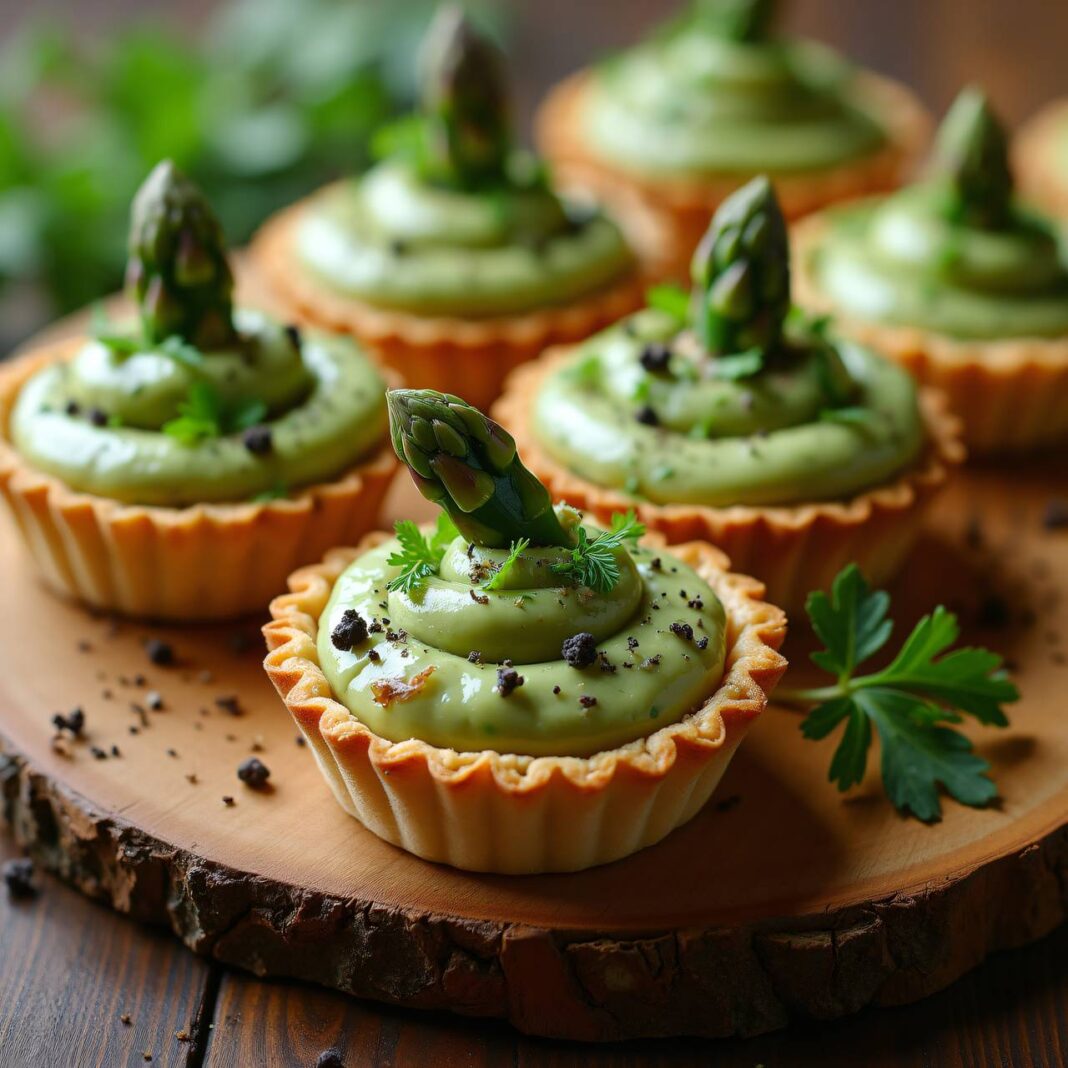 Leckere Tartelettes mit einem Kräuterteig und einer Füllung aus grünem Spargel und Topfen.