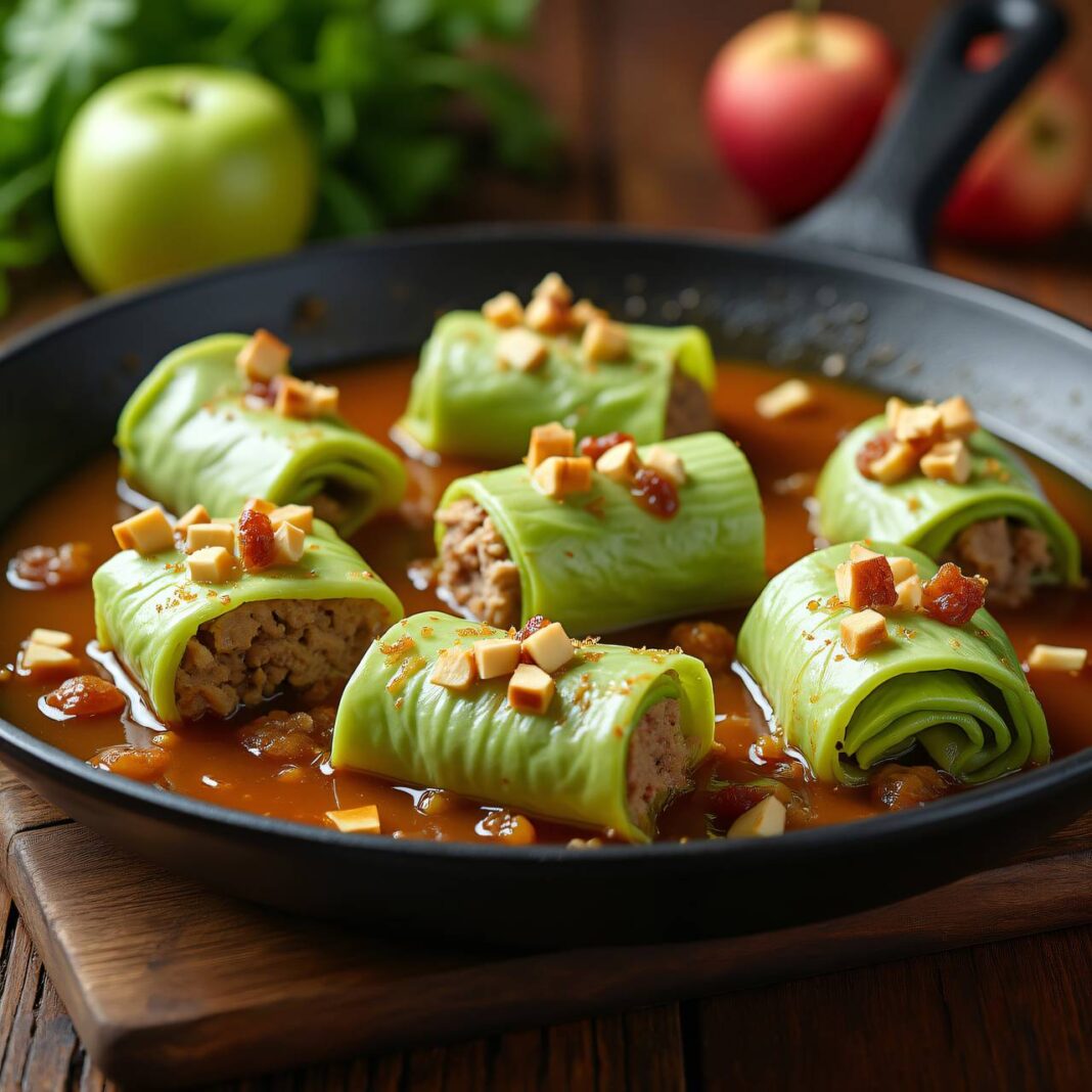 Ein köstliches Rezept für gefüllte Krautrollen mit Hackfleisch und einer fruchtigen Note.