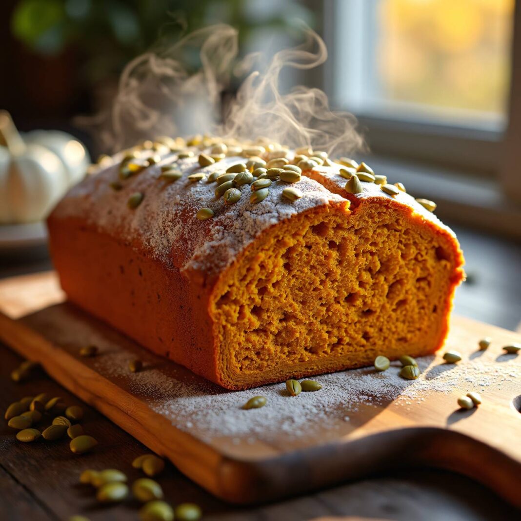 Ein leckeres und gesundes Kürbisbrot mit Magertopfen, ideal für den Herbst.