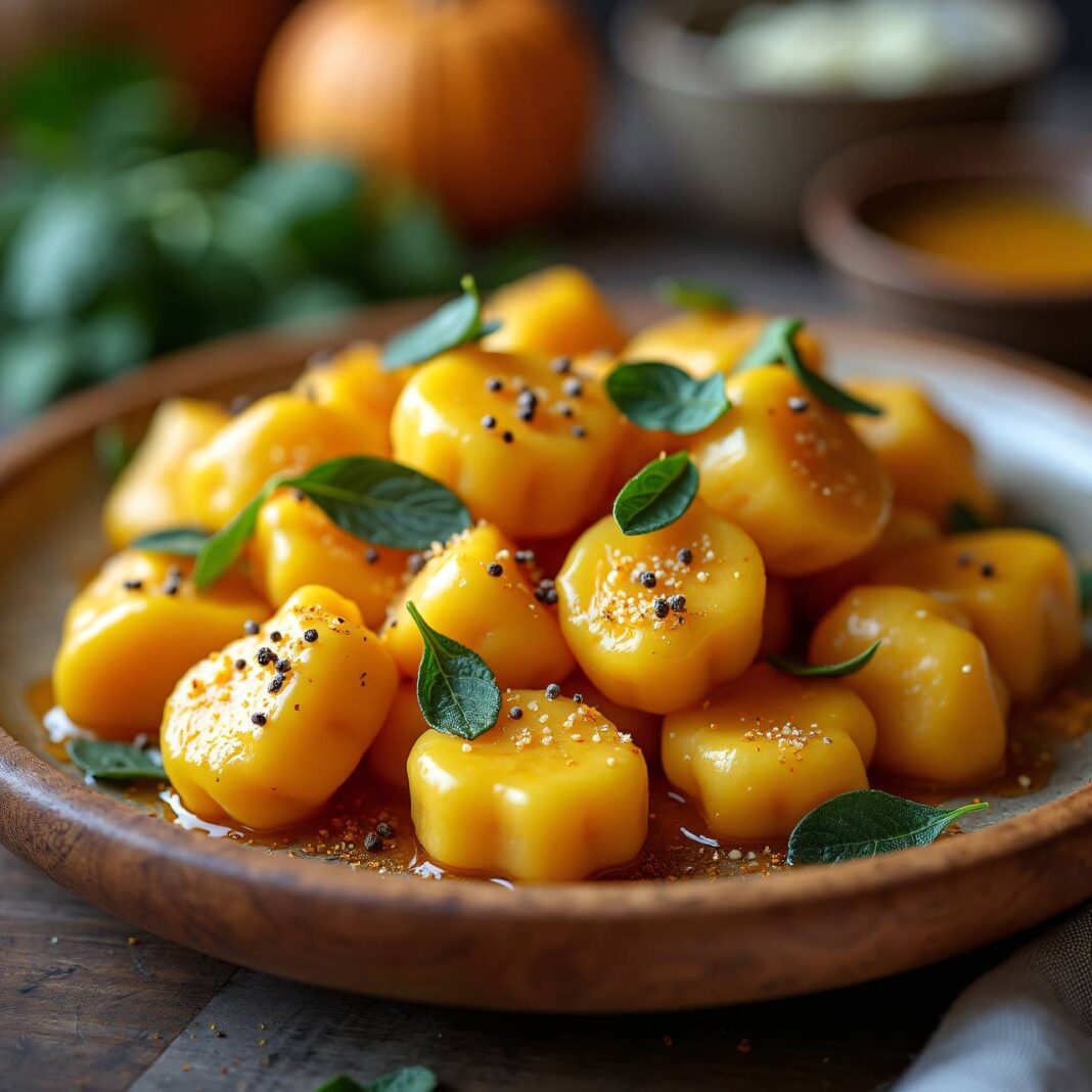 Leckere und einfache Kürbisgnocchi, ideal für ein herzhaftes Abendessen.