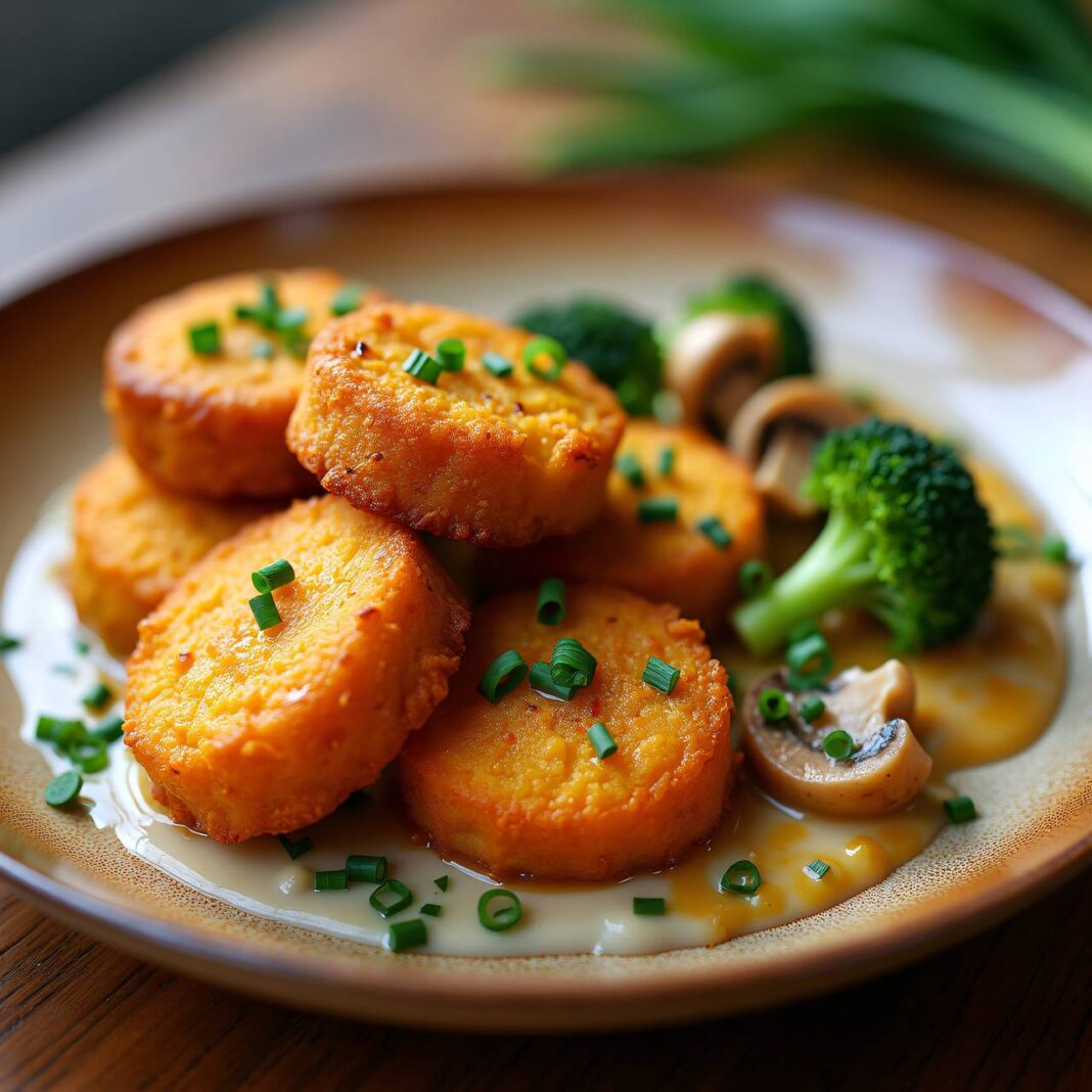 Ein leckeres Rezept für Kürbispuffer, serviert mit einer köstlichen Pilzsauce.