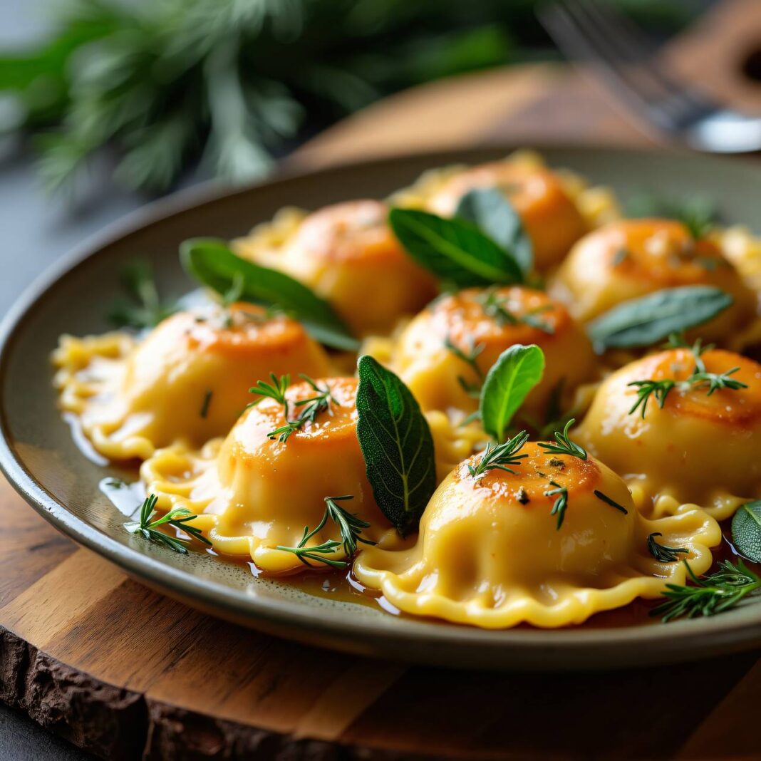 - Verteilen Sie die Salbeibutter über die Ravioli und servieren Sie sofort.