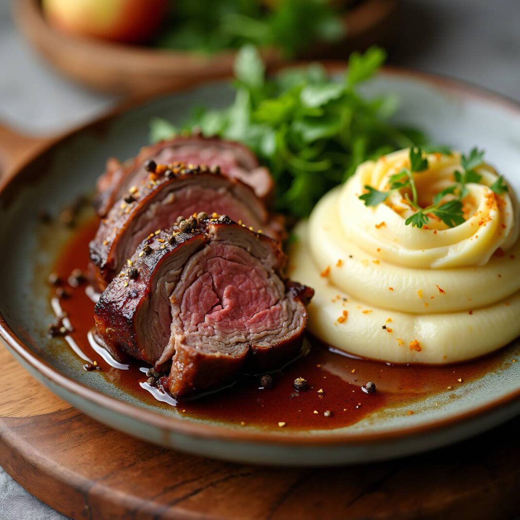 Ein köstliches Rezept für Lammgigot-Tranchen, serviert mit einem cremigen Pastinaken-Apfel-Stampf.