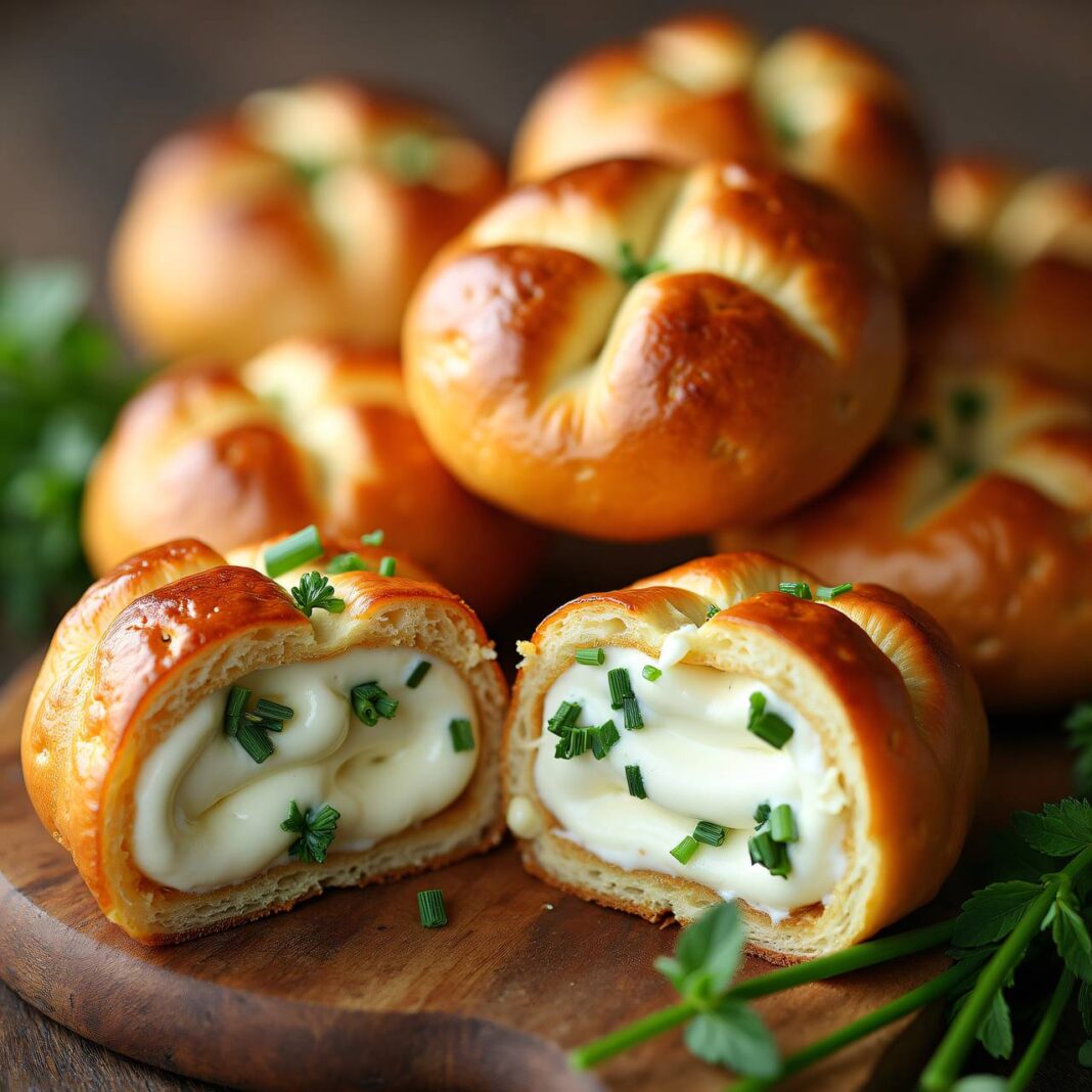Ein köstliches Laugengebäck gefüllt mit einer cremigen Frischkäse- und Kräuterfüllung.