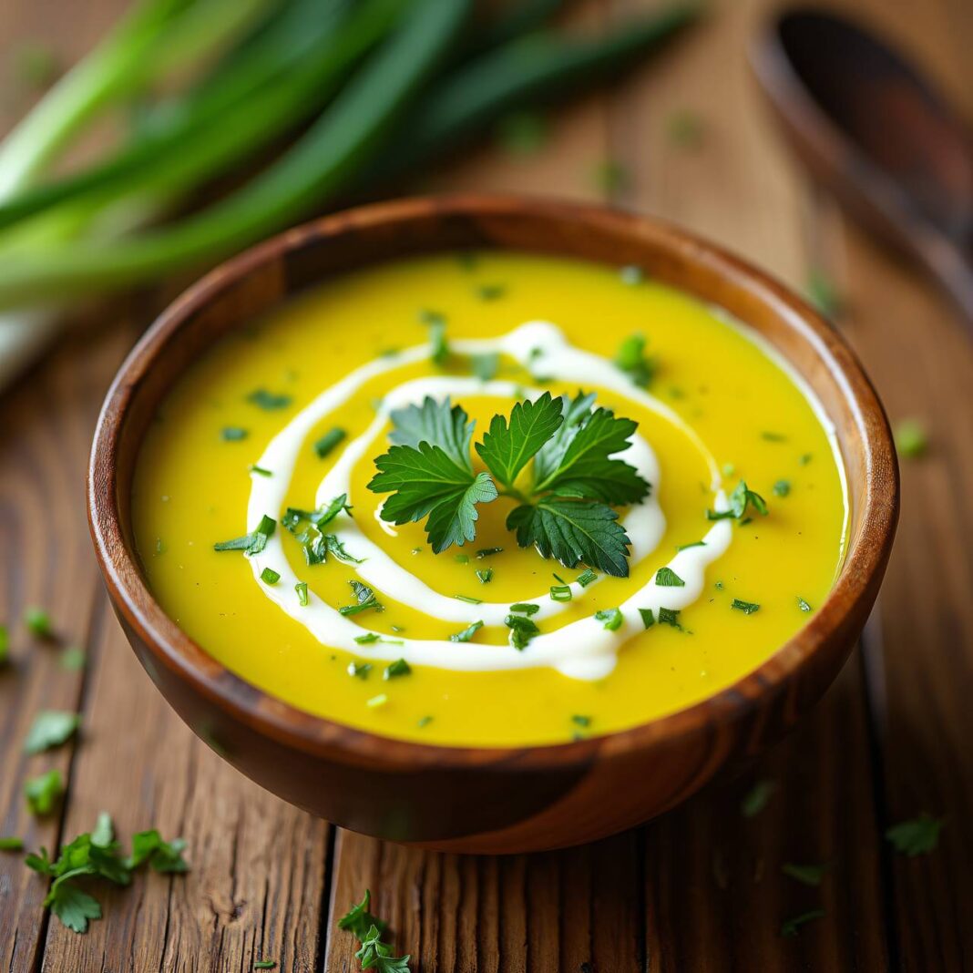 Eine köstliche und cremige Suppe mit frischen Löwenzahnblättern und feinem Grieß.