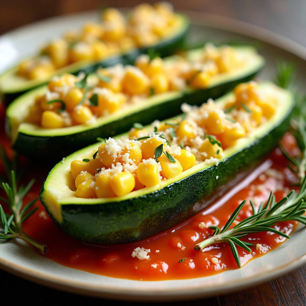 Ein köstliches Rezept für gefüllte Zucchini mit einer cremigen Maisfüllung, perfekt zum Gratinsieren.