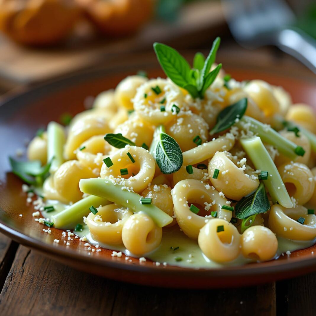 Ein köstliches Pasta-Gericht mit einer cremigen Kohlrabi-Kräuter-Sauce.