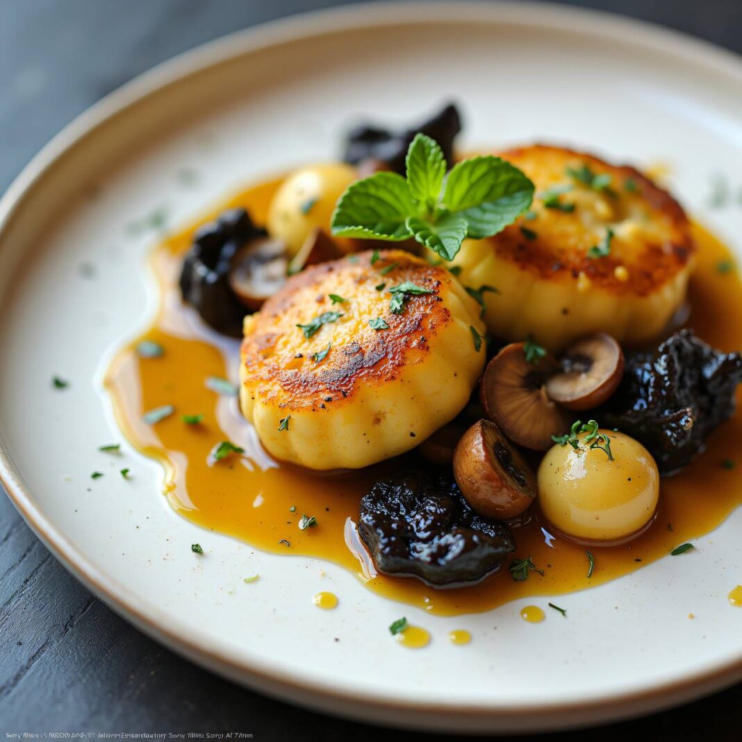 Ein köstliches Rezept für Malfatti mit gebratenen Schwarzwurzeln und einer aromatischen Pilzsauce.