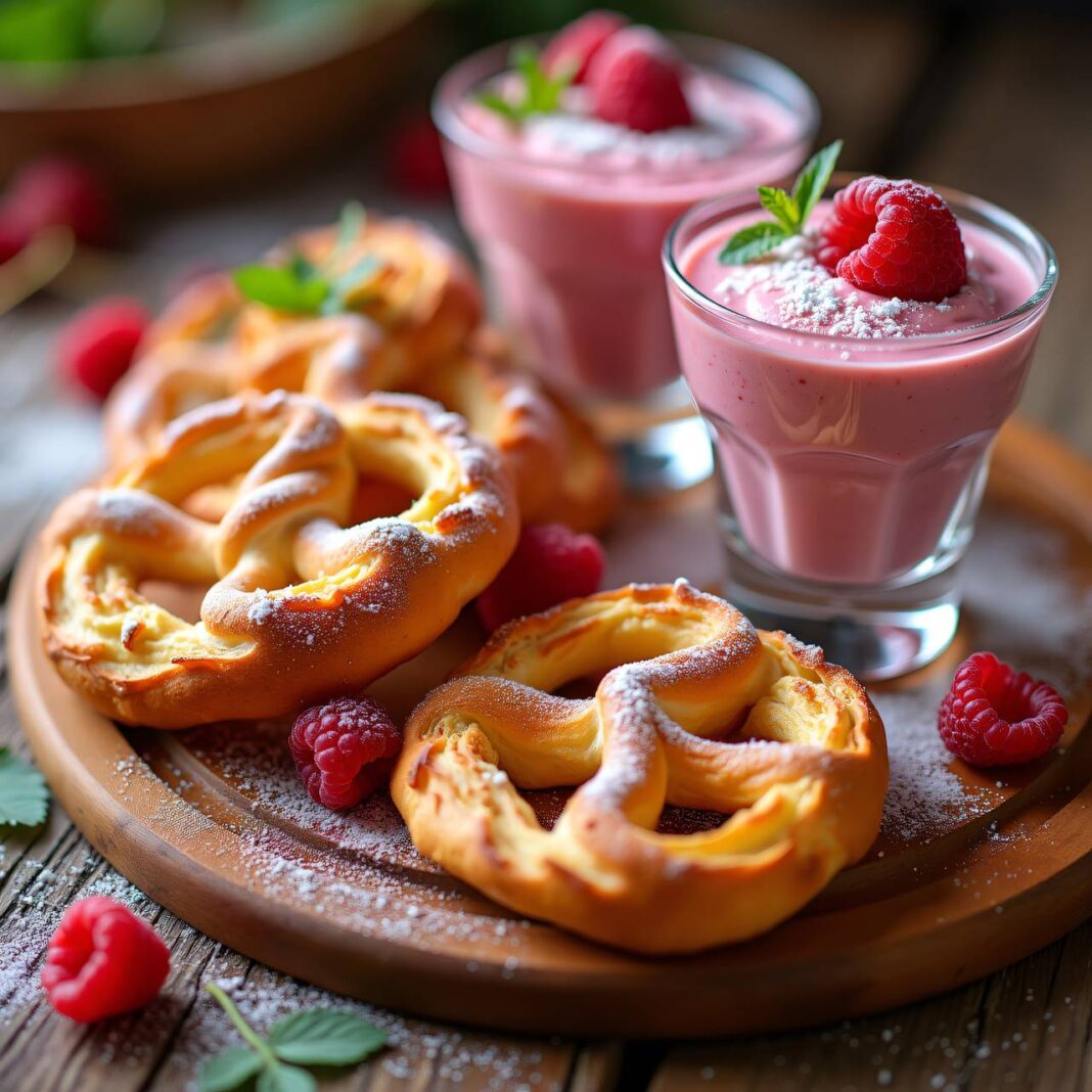 Ein köstliches Rezept für Obersbretzeli, serviert mit einer frischen Himbeercrème.