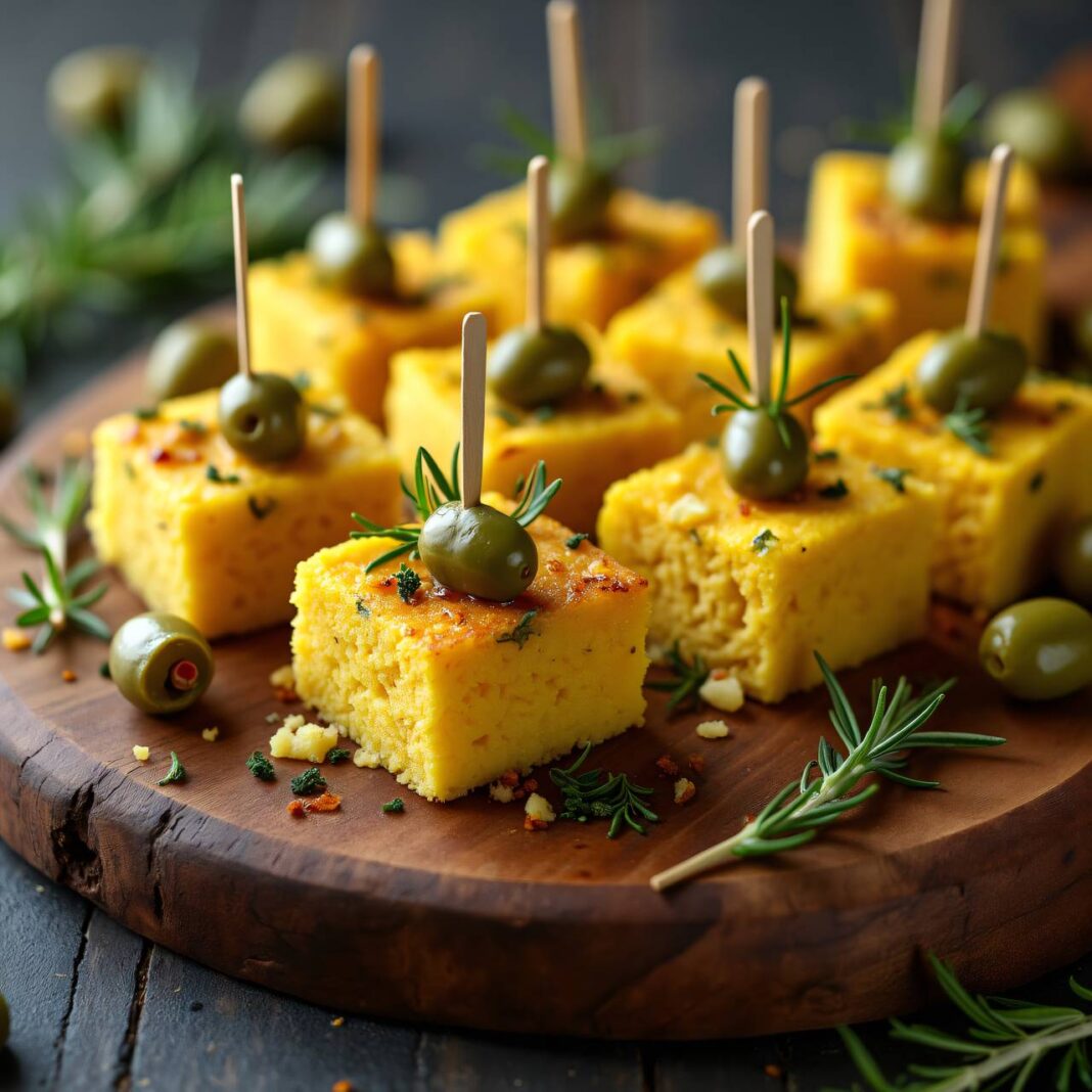 Die Oliven-Polenta-Würfel eignen sich hervorragend als Vorspeise oder Snack für unterwegs.