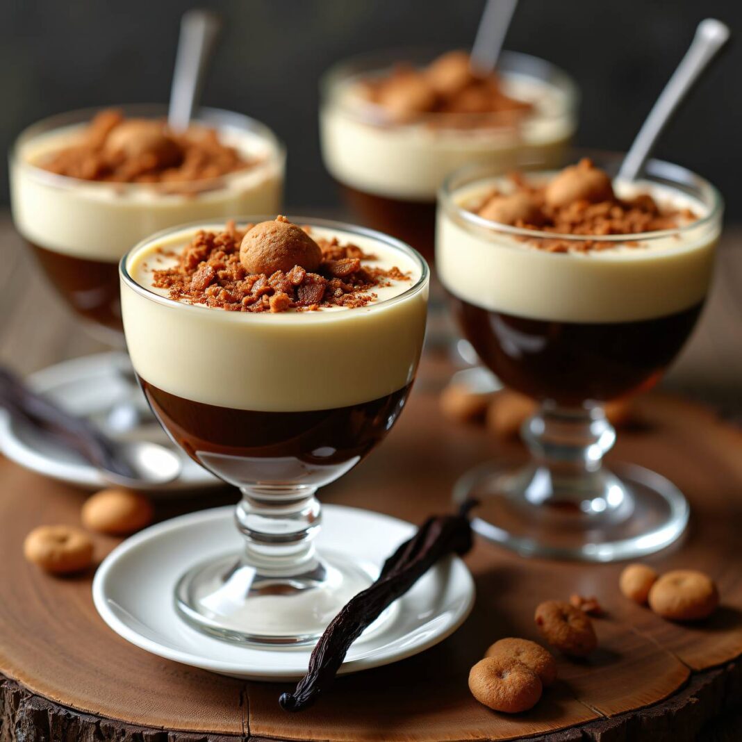 Eine cremige Panna Cotta, verfeinert mit zerkleinerten Lebkuchen und Espresso, perfekt für die Winterzeit.