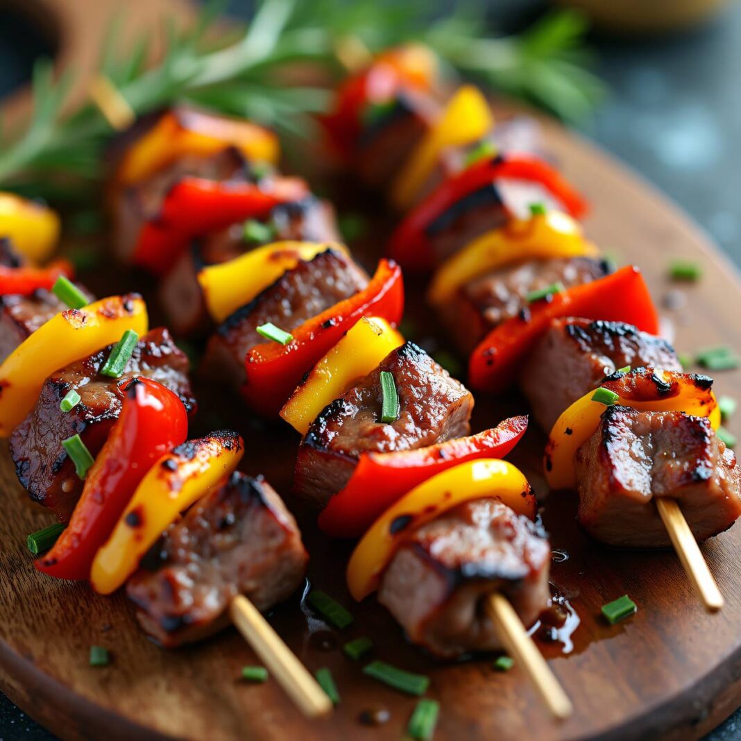 Leckere Spieße aus zartem Lammfleisch und bunten Paprika, perfekt zum Grillen oder Braten.