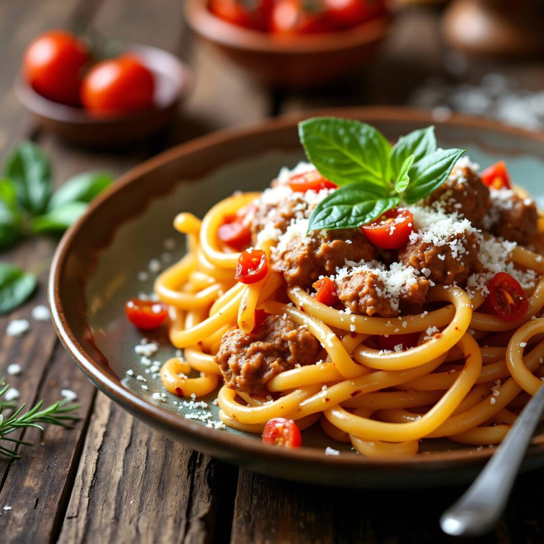 Ein köstliches Pasta-Gericht mit einer herzhaften Wirsing-Hackfleischsauce, perfekt für ein schnelles Abendessen.