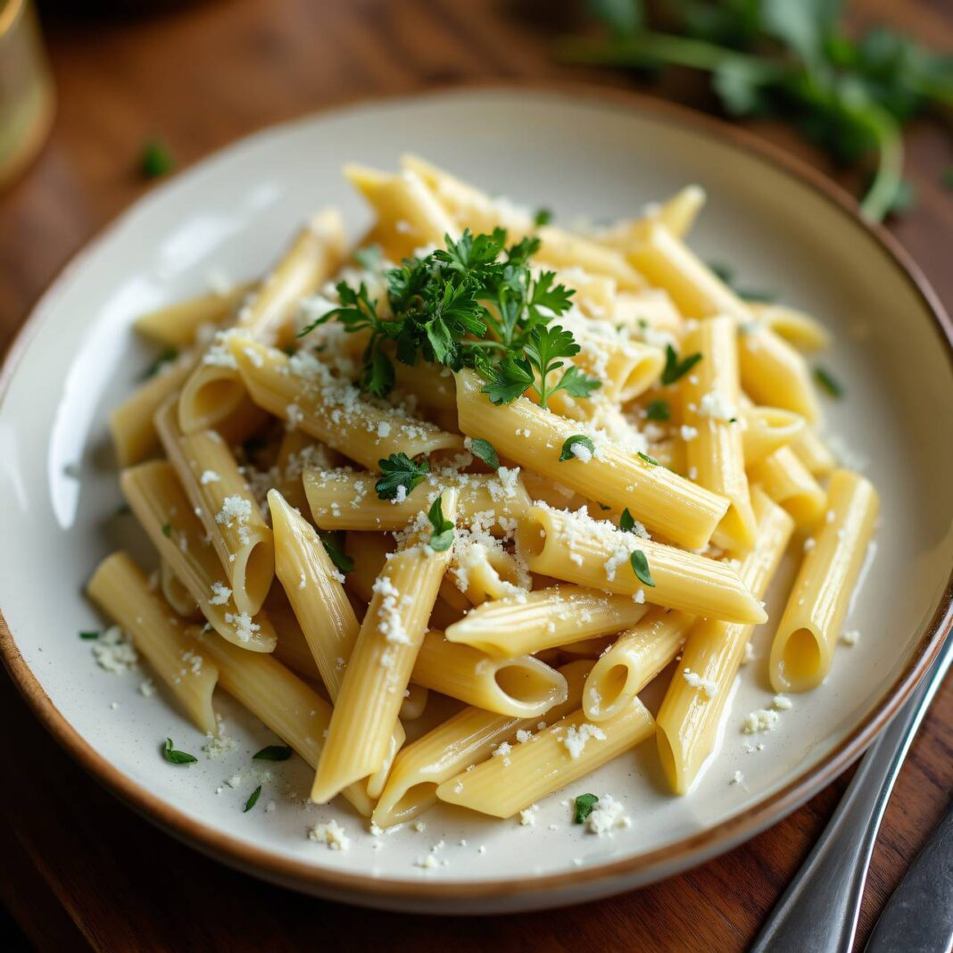 - Servieren: Die Penne auf vorgewärmten Tellern verteilen. Die Sauce darübergeben, mit fein geschnittenem Lauch garnieren und mit geriebenem Parmesan bestreuen.