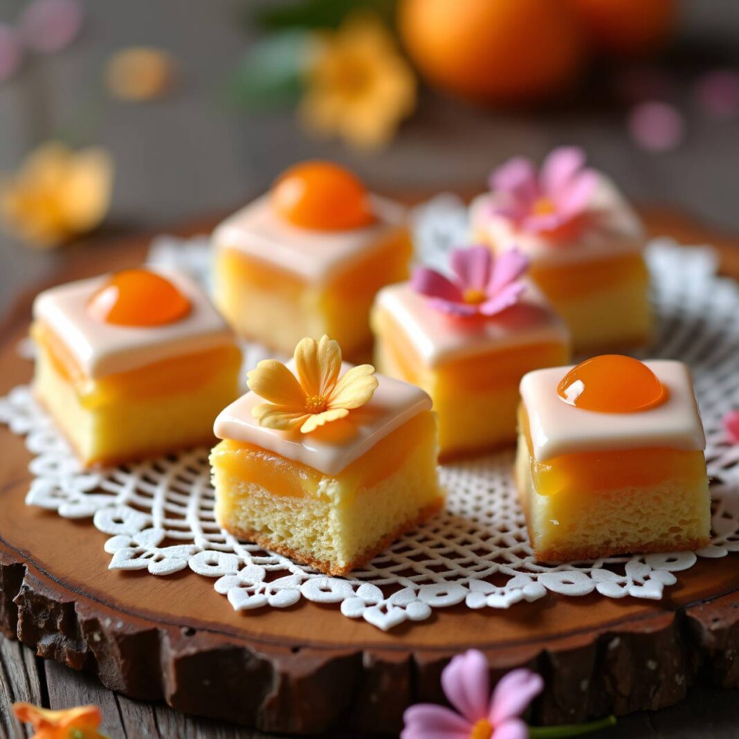 Ein köstliches Rezept für zarte Petit Fours, gefüllt mit Buttercreme und Aprikosenmarmelade, perfekt für besondere Anlässe.