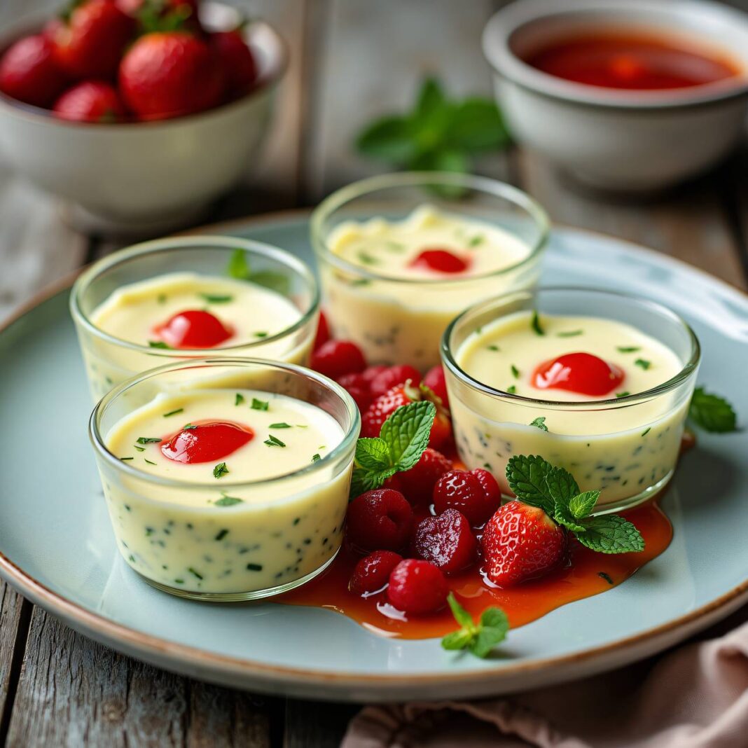 Ein erfrischendes Dessert aus Grieß und Erdbeeren, verfeinert mit Pfefferminze.