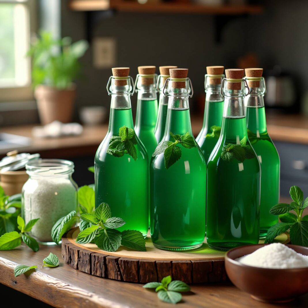 Ein erfrischender Pfefferminzsirup, ideal für Getränke und Desserts.