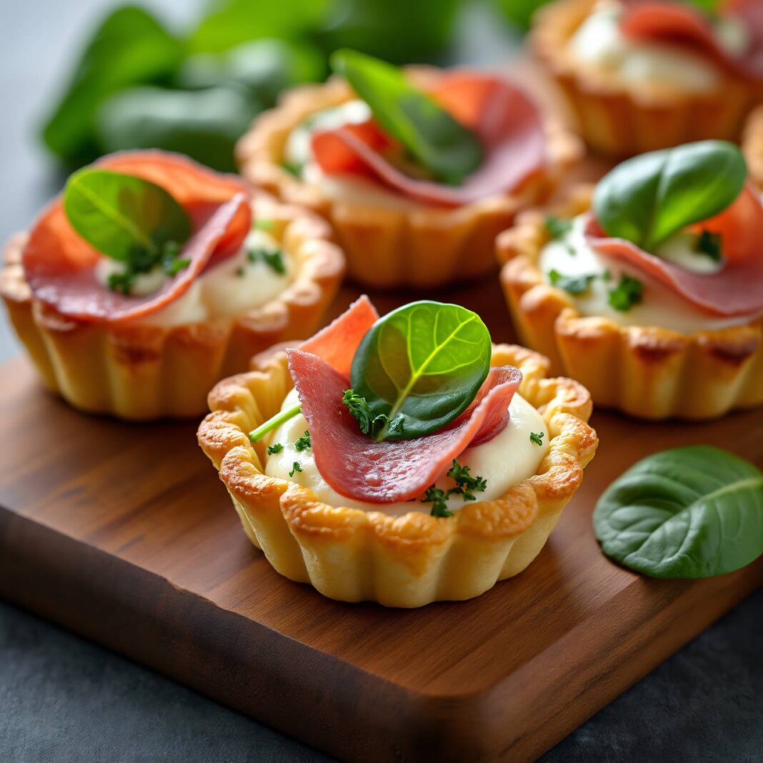 4. Backen: Die Förmchen auf der untersten Schiene des auf 220 °C vorgeheizten Ofens 20-25 Minuten backen. Nach dem Backen die Scheiben Roastbeef oder Rohschinken darauflegen, garnieren und sofort servieren.