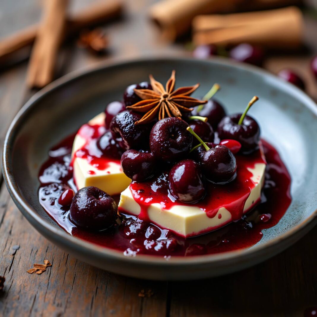 Ein köstliches und pikantes Kirschenkompott, das perfekt zu Frischkäse passt und lauwarm serviert werden kann.