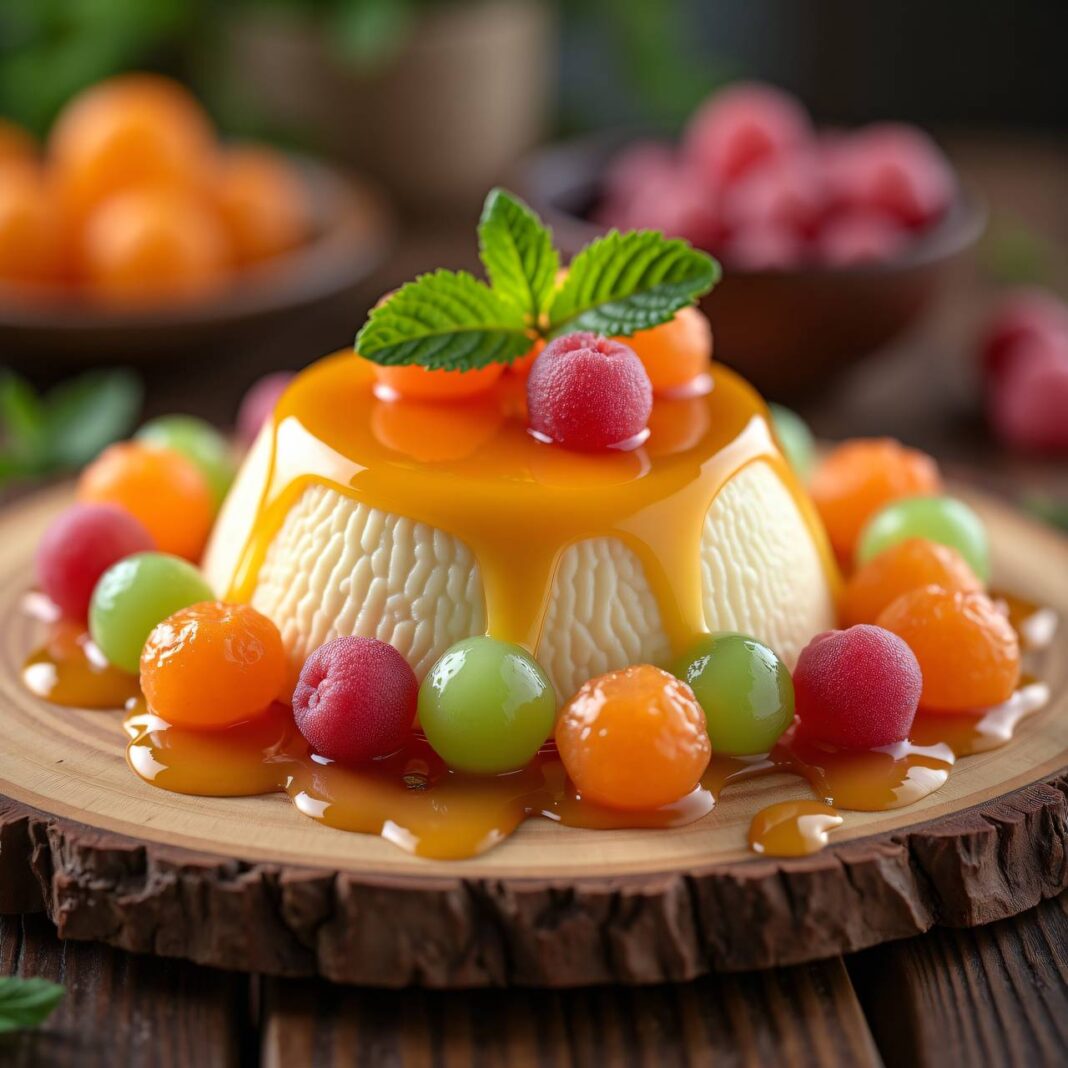 Ein delikates Dessert aus Portwein, Eigelb und frischen Melonen, perfekt für besondere Anlässe.