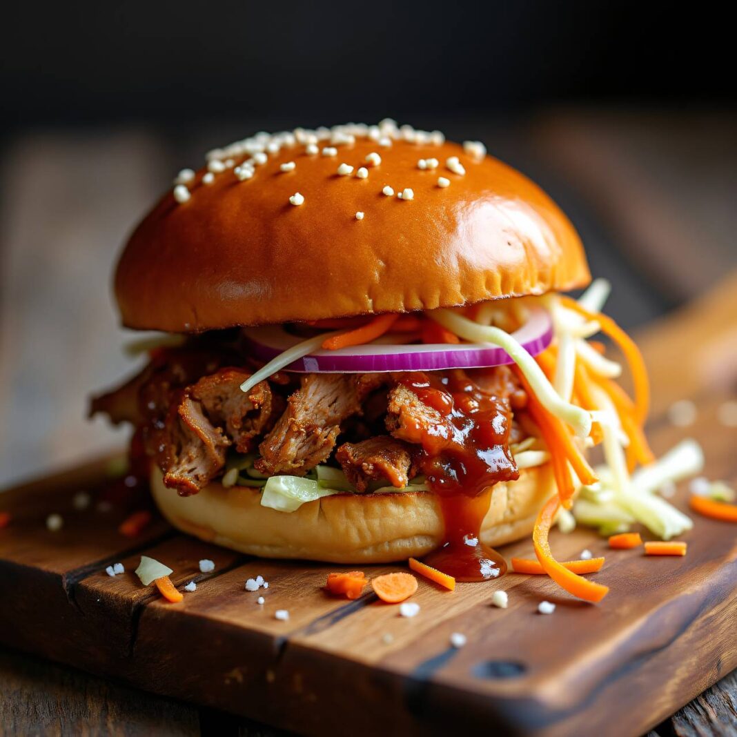 Ein köstlicher Pulled Pork Burger mit zartem Fleisch und frischem Salat.