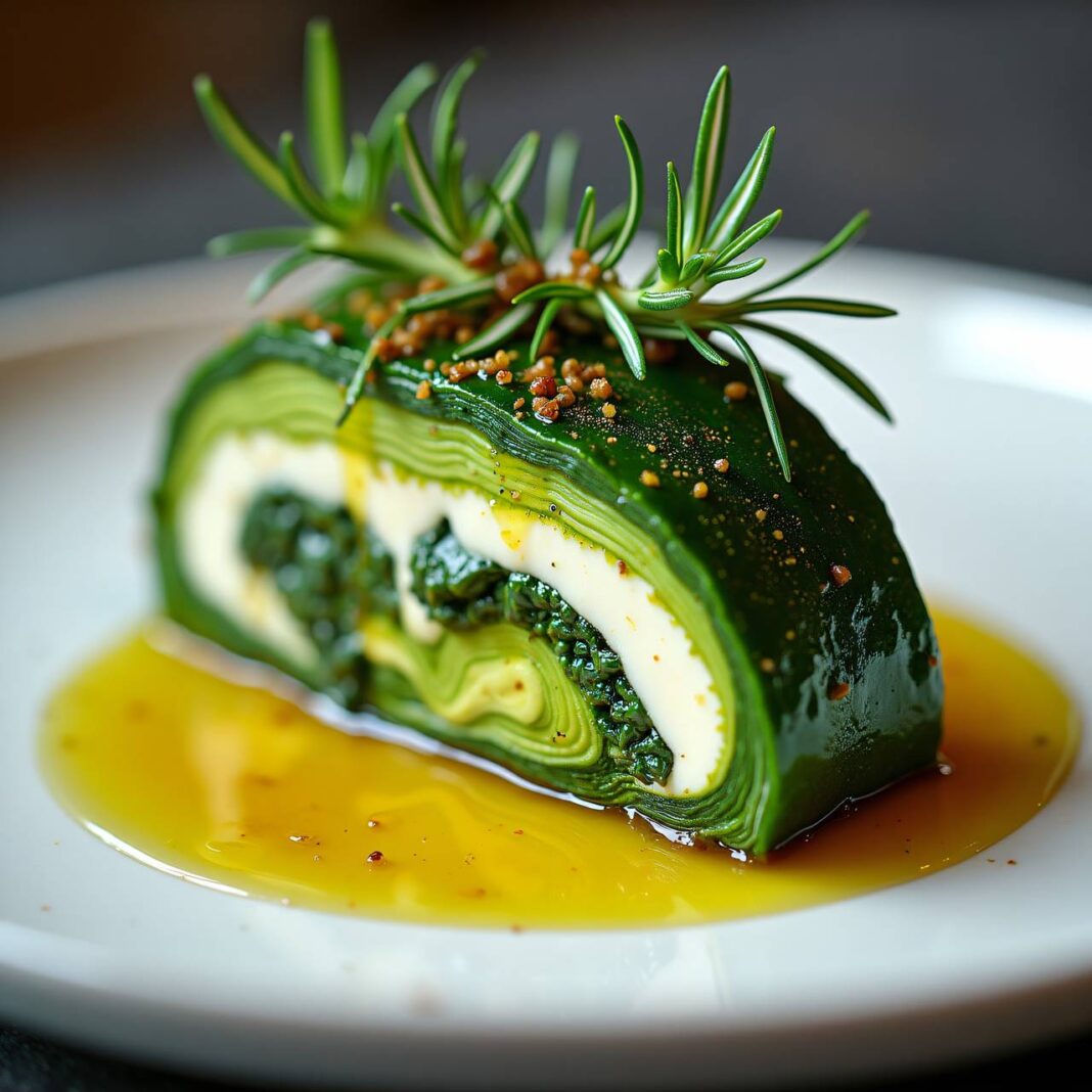Eine leckere Quark-Terrine, serviert mit einer aromatischen Vinaigrette und frischem Rosmarin.