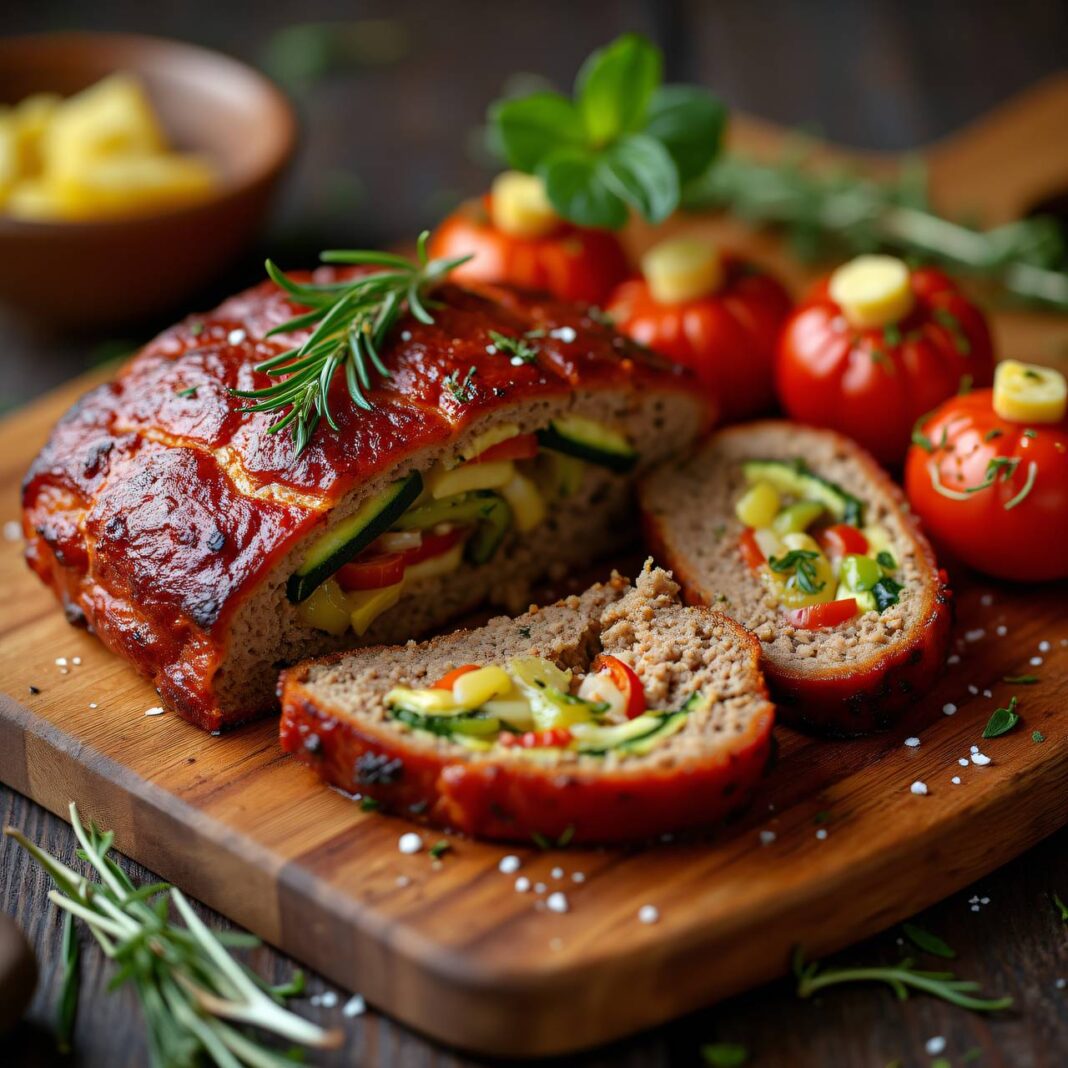 Ein herzhaftes Gericht aus Fleischkäse mit Gemüse und aromatischen Rosmarintomaten.