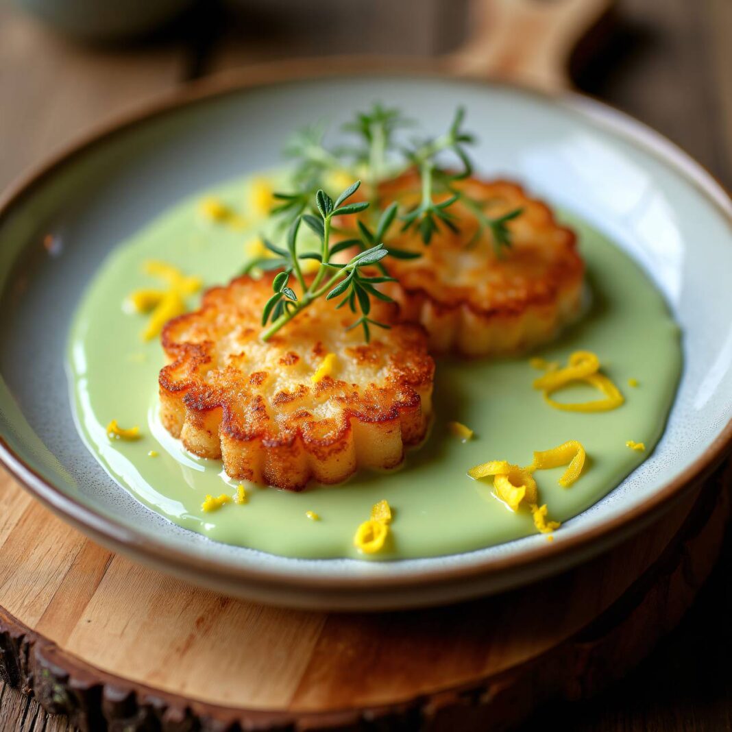 Ein köstliches Rezept für Reiskrapfen, serviert mit einer aromatischen Waldmeistersauce.
