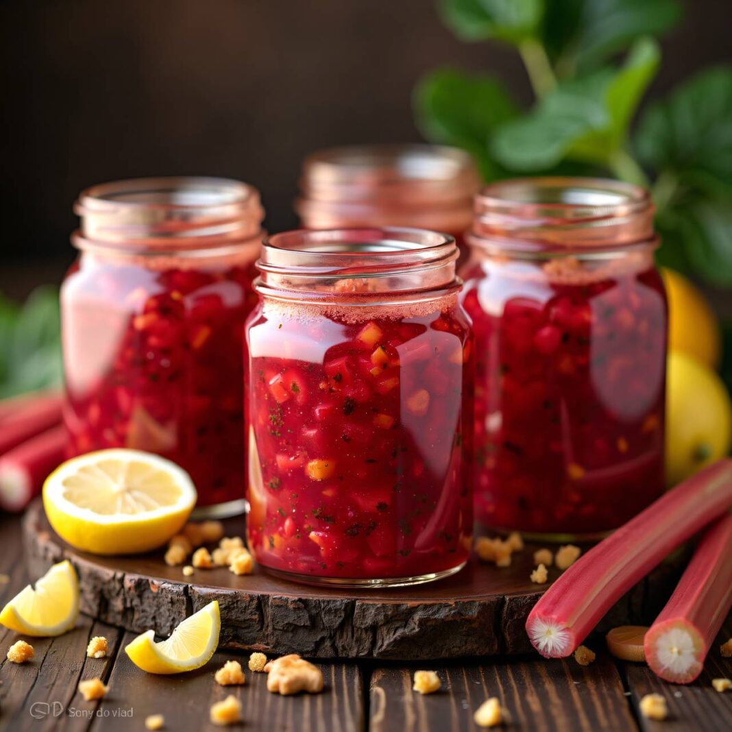 Eine köstliche Marmelade aus frischem Rhabarber und würzigem Ingwer, perfekt für Brot und Brötchen.