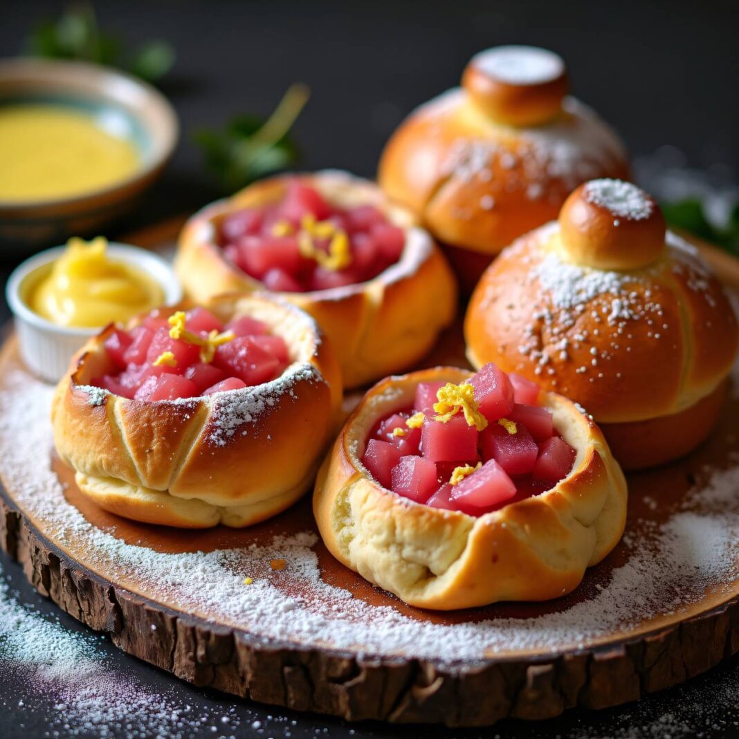 Ein köstliches Rezept für gefüllte Brioches mit Rhabarberkompott und Zitronenquark.