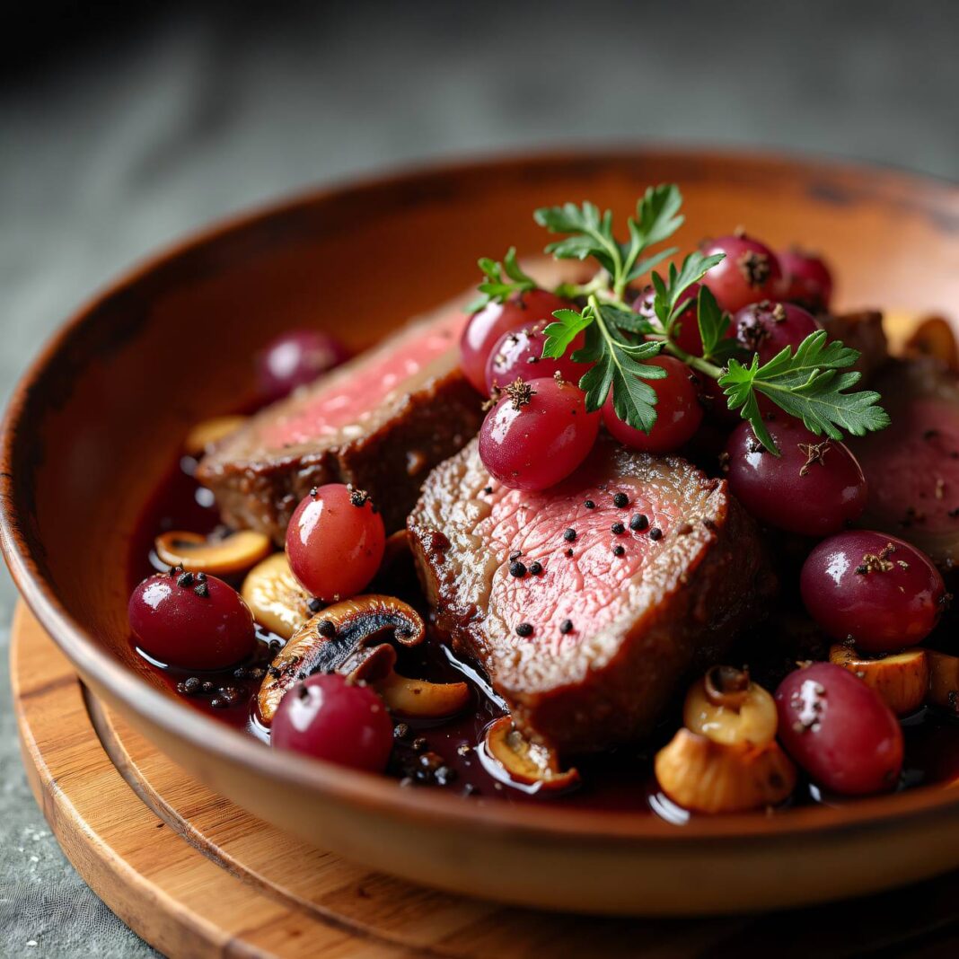Ein köstliches Rezept für Rinderhüfte in einer aromatischen Traubensauce, perfekt für besondere Anlässe.