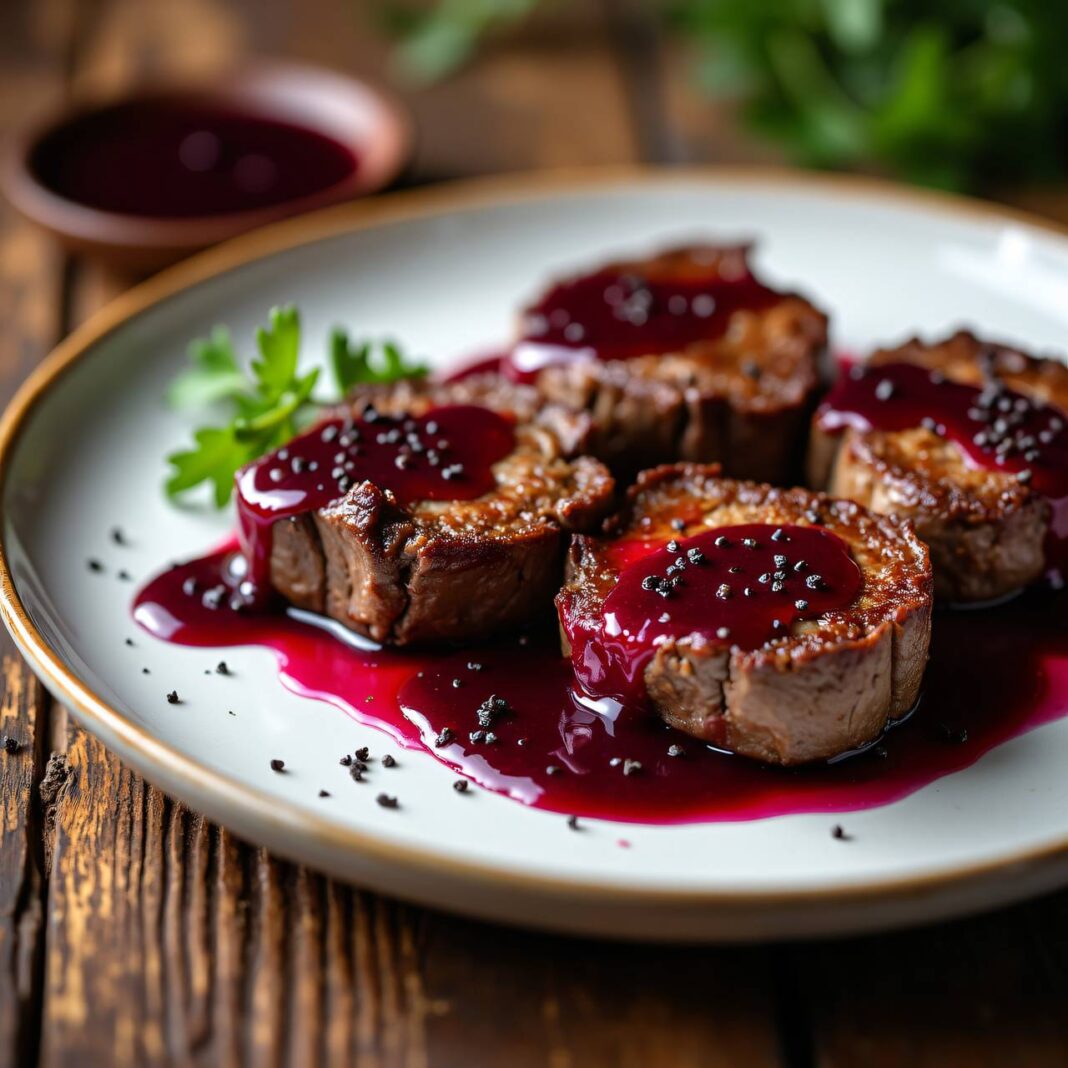 Zarte Rindsfilet-Medaillons serviert mit einer aromatischen Holunder-Buttersauce.