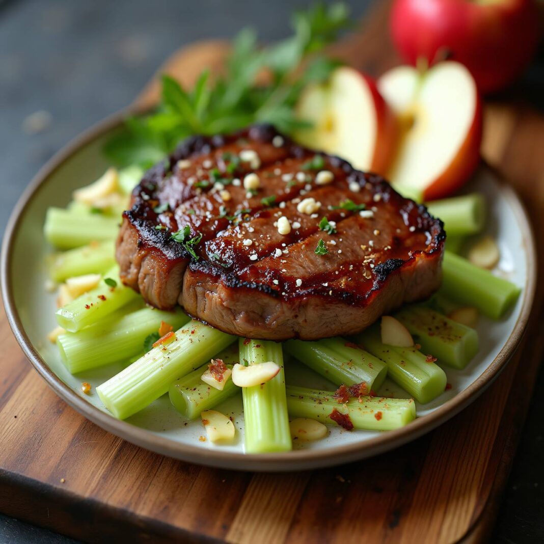 Dieses Rezept ergibt eine köstliche Kombination aus zartem Rindssteak und einem aromatischen, warmen Selleriesalat.