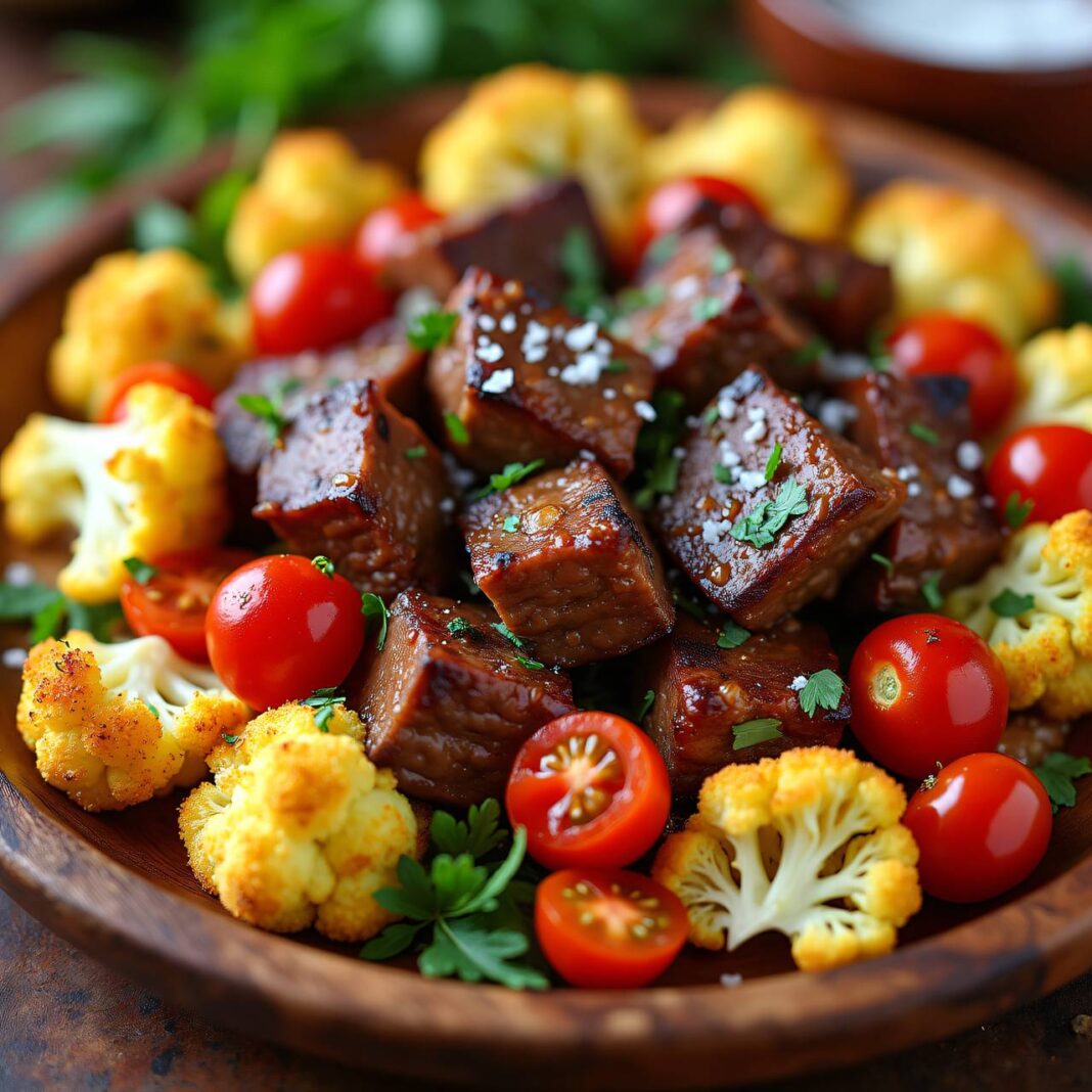 Garen Sie den Blumenkohl im Dampf oder in siedendem Salzwasser für 4 bis 5 Minuten und nehmen Sie ihn anschließend heraus. Braten Sie den Blumenkohl in einer großen Bratpfanne mit Bratbutter unter gelegentlichem Wenden für 5 bis 7 Minuten. Fügen Sie die Cherrytomaten hinzu und braten Sie alles für weitere 2 Minuten fertig, salzen Sie nach Geschmack.